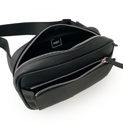 Bolso con forma baúl realizado en cuero vacuno graneado. Espacioso y práctico para viajes cortos. Manijas tubulares y acolchadas para llevar el bolso en la mano y correa de algodón ajustable y desmontable para llevarlo al hombro. Además tiene una manija adicional sobre una de sus tapas laterales. Cierres plásticos negros Bold Black. Interior completamente forrado en algodón con bolsillo de 16 cms con cierre.