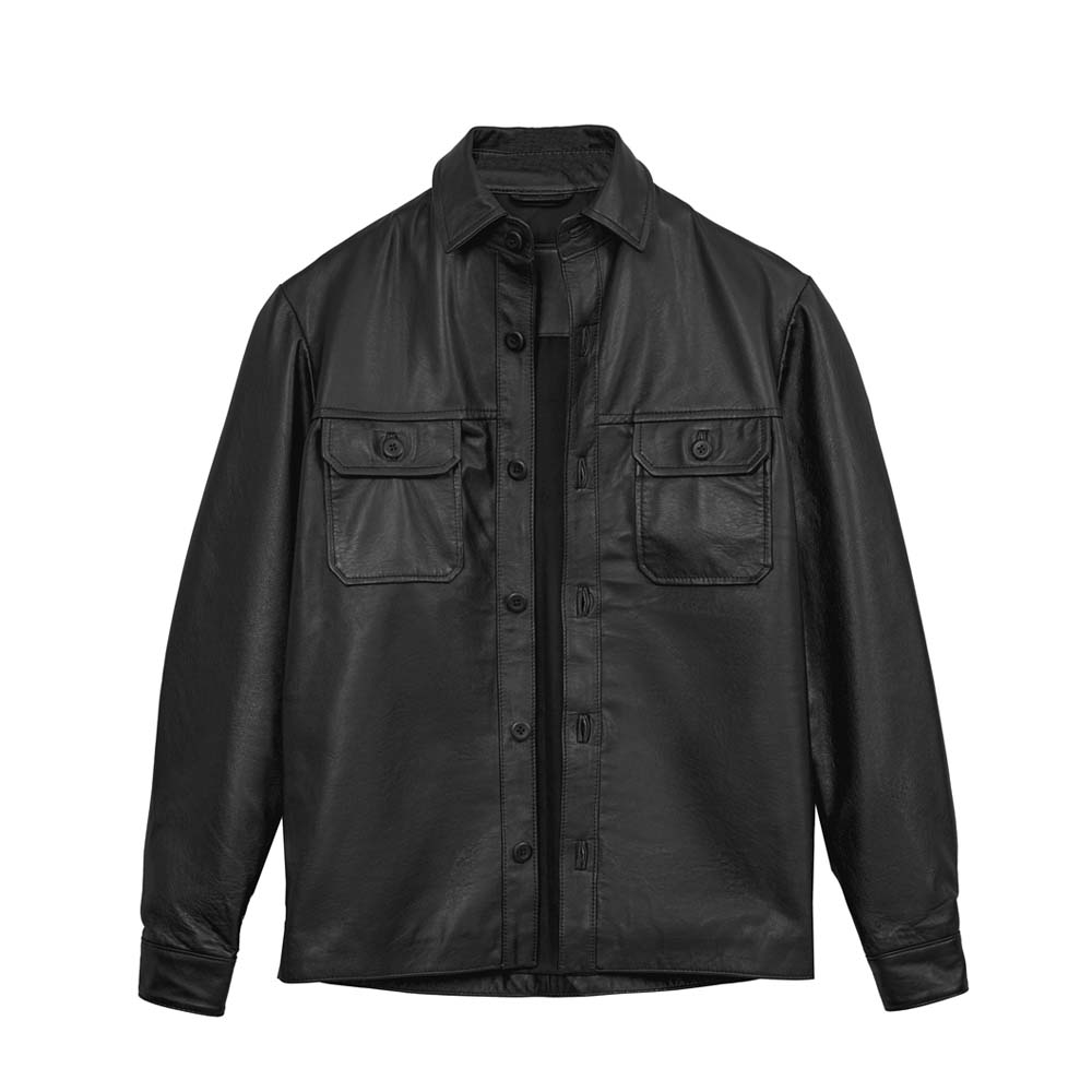 Campera de cuero de oveja, de formato tipo camisa con botones.