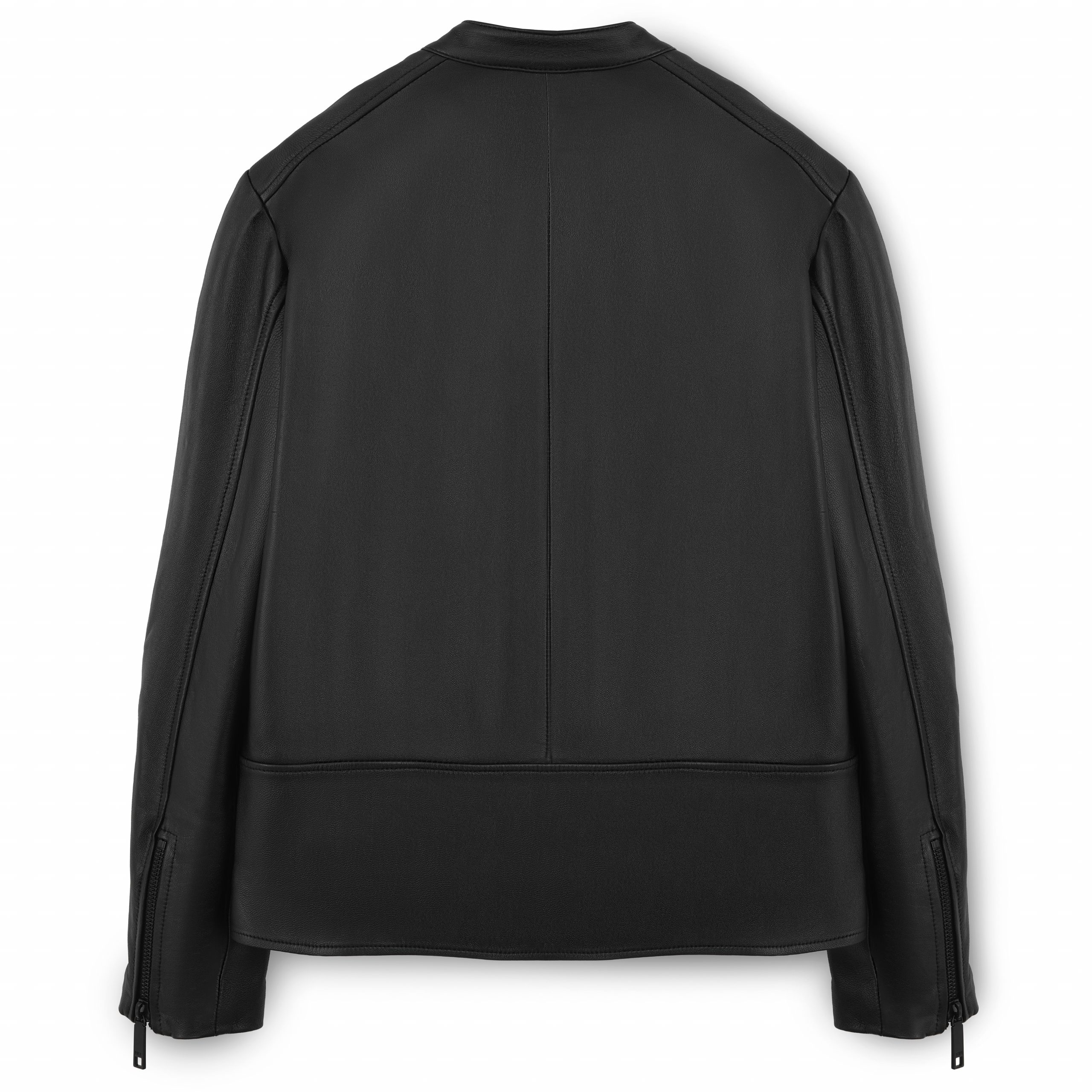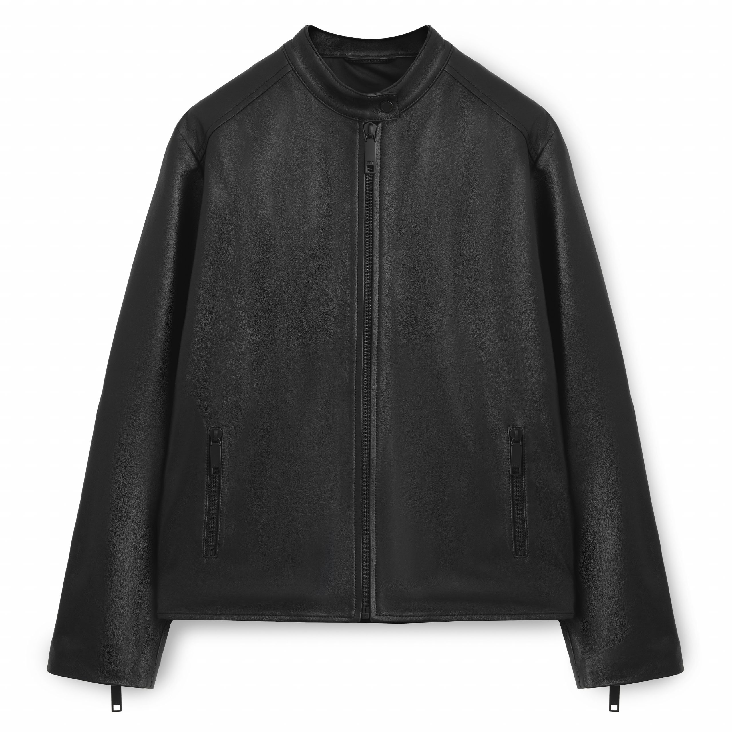 Campera motoquera con cierre y cuello mao. Realizada en el más suave cuero de oveja italiano.