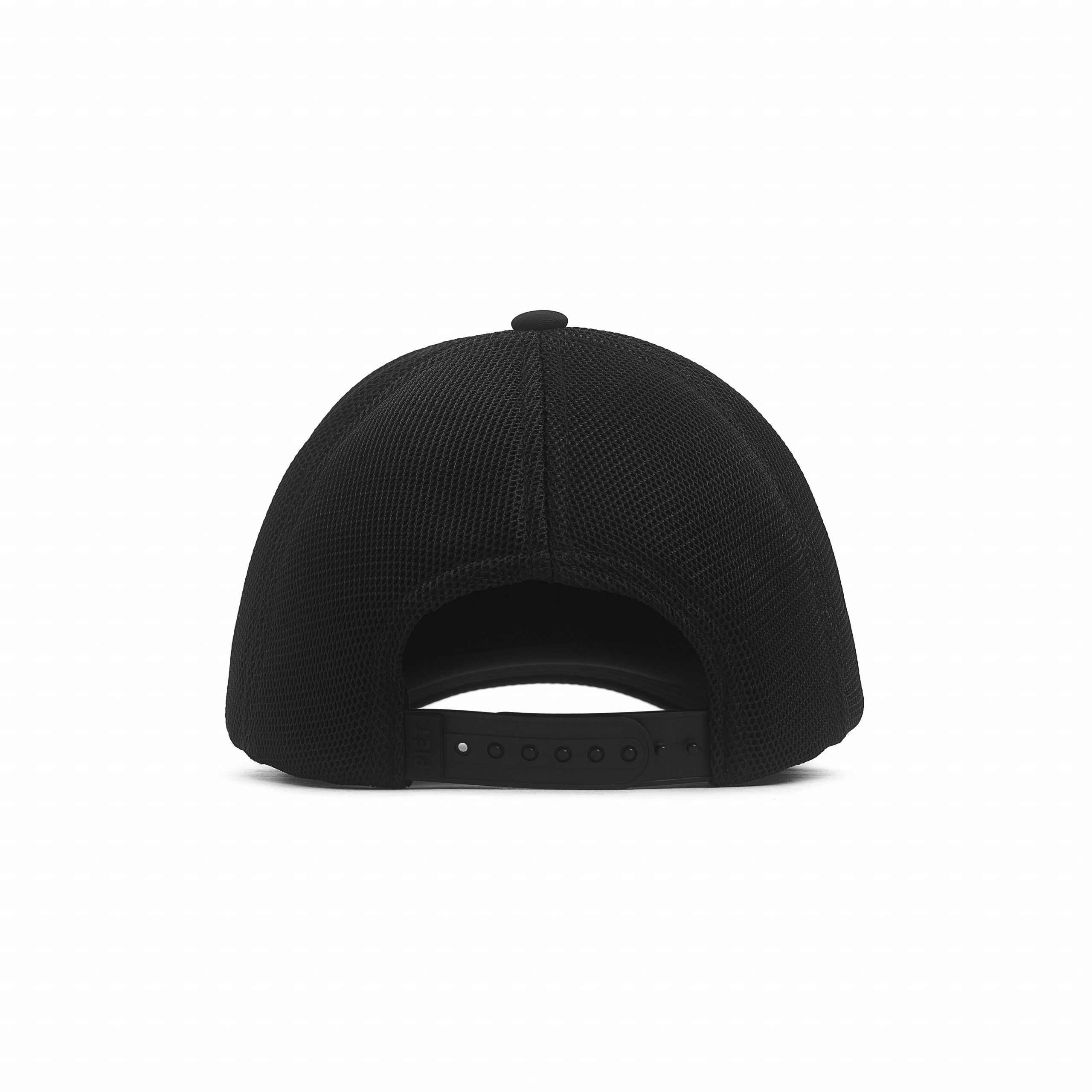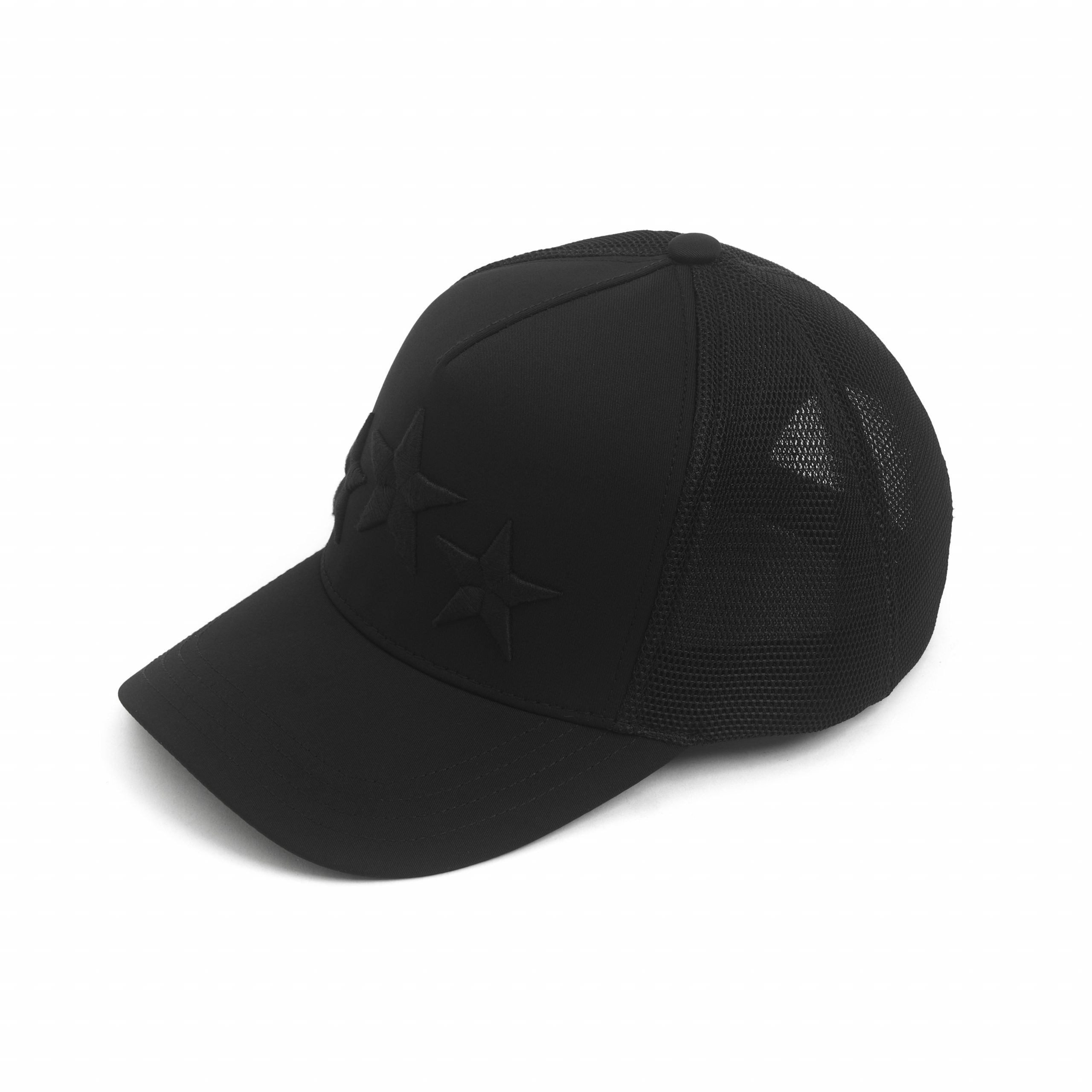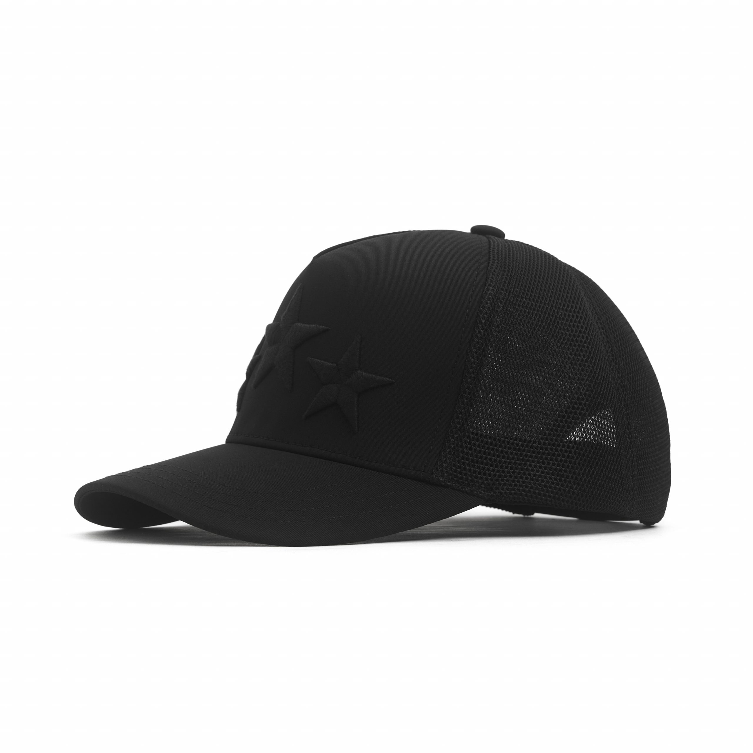 Gorra de poliéster y tejido mesh premium. Clásico formato trucker de 5 gajos y diseño de 3 estrellas.