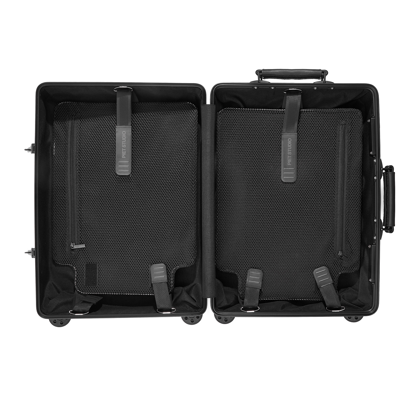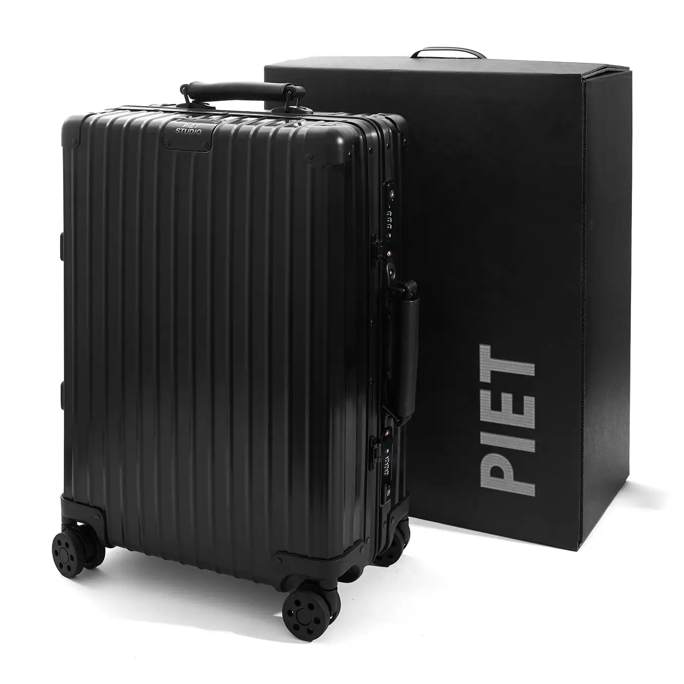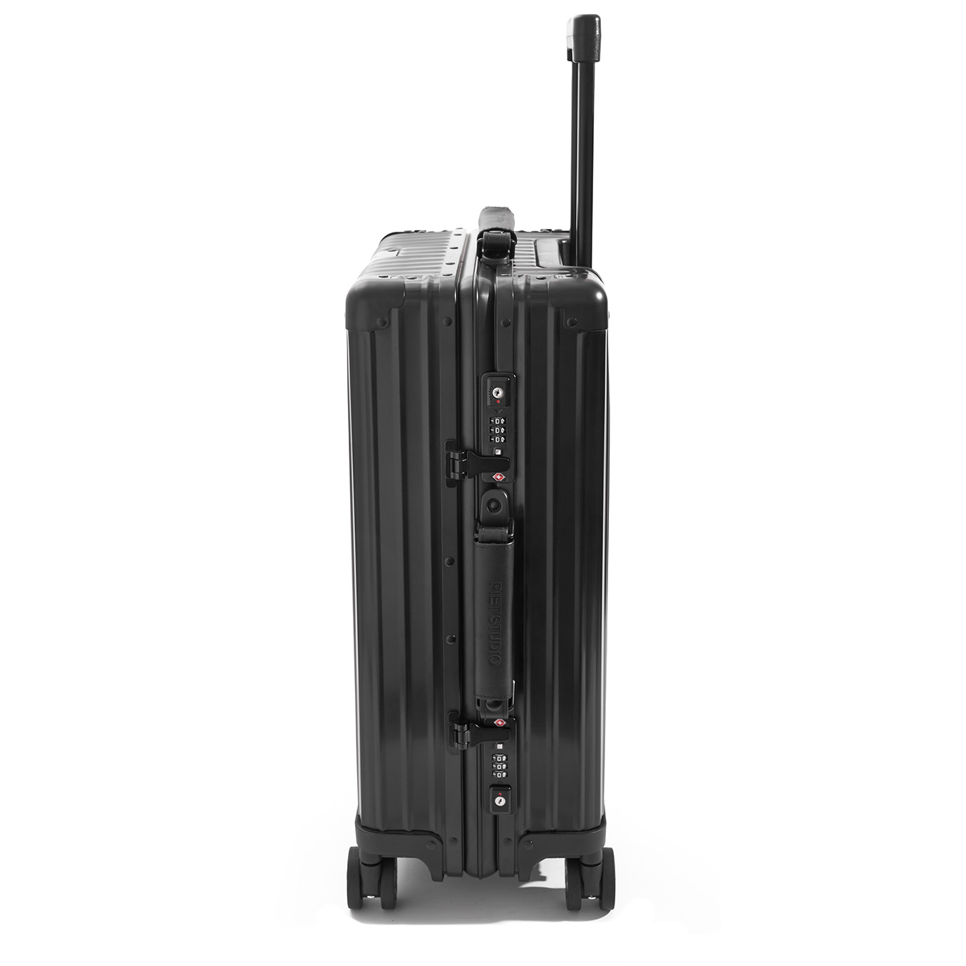 Nuevo Carry-On realizado en aluminio anodizado negro con manijas de cuero. Con las medidas perfectas para ir en cabina, esta liviana y resistente valija es ideal para escapadas cortas de fin de semana o viajes de negocios. Cuenta con 4 ruedas multidireccionales, asa telescópica regulable en altura y doble candado de seguridad «TSA». Su interior está forrado en algodón y trae separadores removibles de tela y mesh para mantener todo en su lugar. Viene presentado con una suave funda elástica de PIET STUDIO.