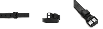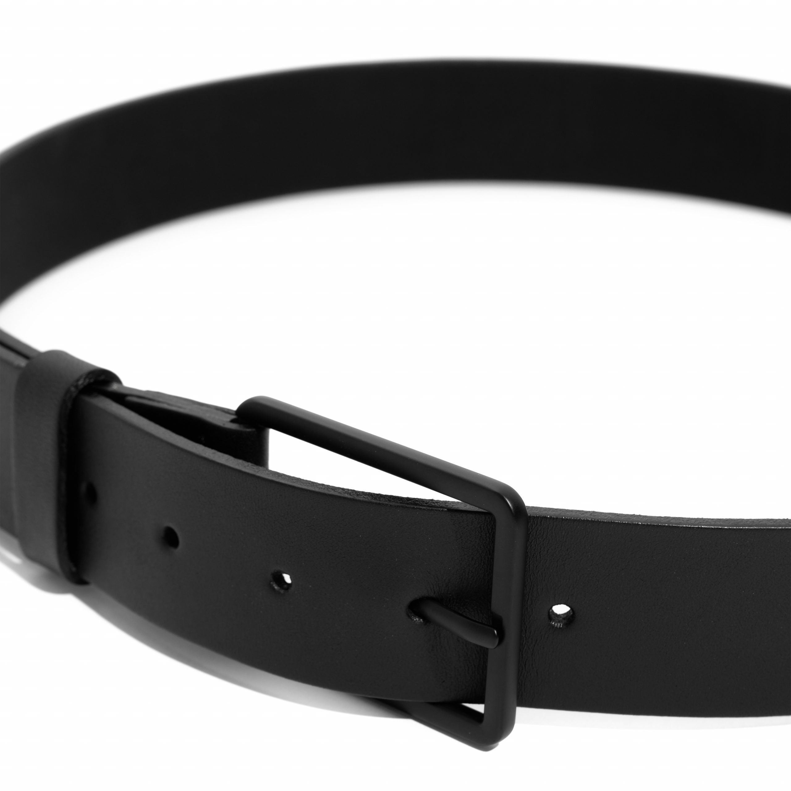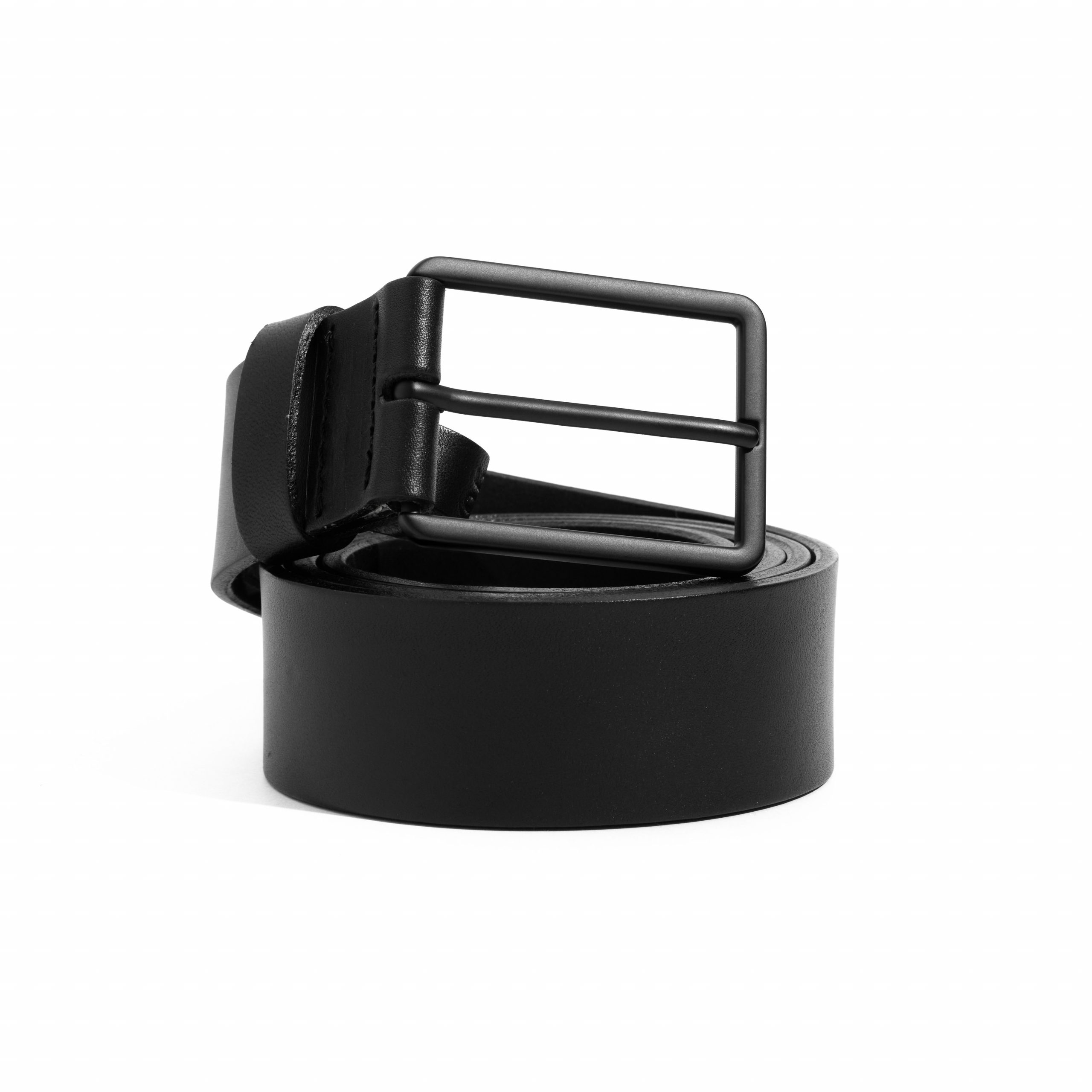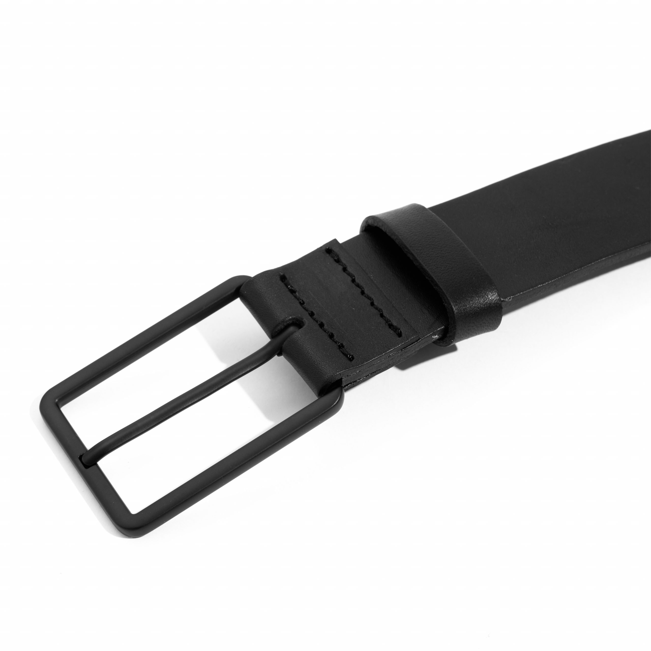 Cinturón de cuero vacuno liso con hebilla rectangular en baño negro satinado. Realizado en una sóla pieza de cuero de 4 cms. de ancho y con el detalle de una puntera en diagonal. Cuenta con 5 agujeros para diferentes calces y presenta un detalle de pasador de cuero móvil. Logo PIET grabado en bajo relieve sobre el revés. Disponible en 5 talles.