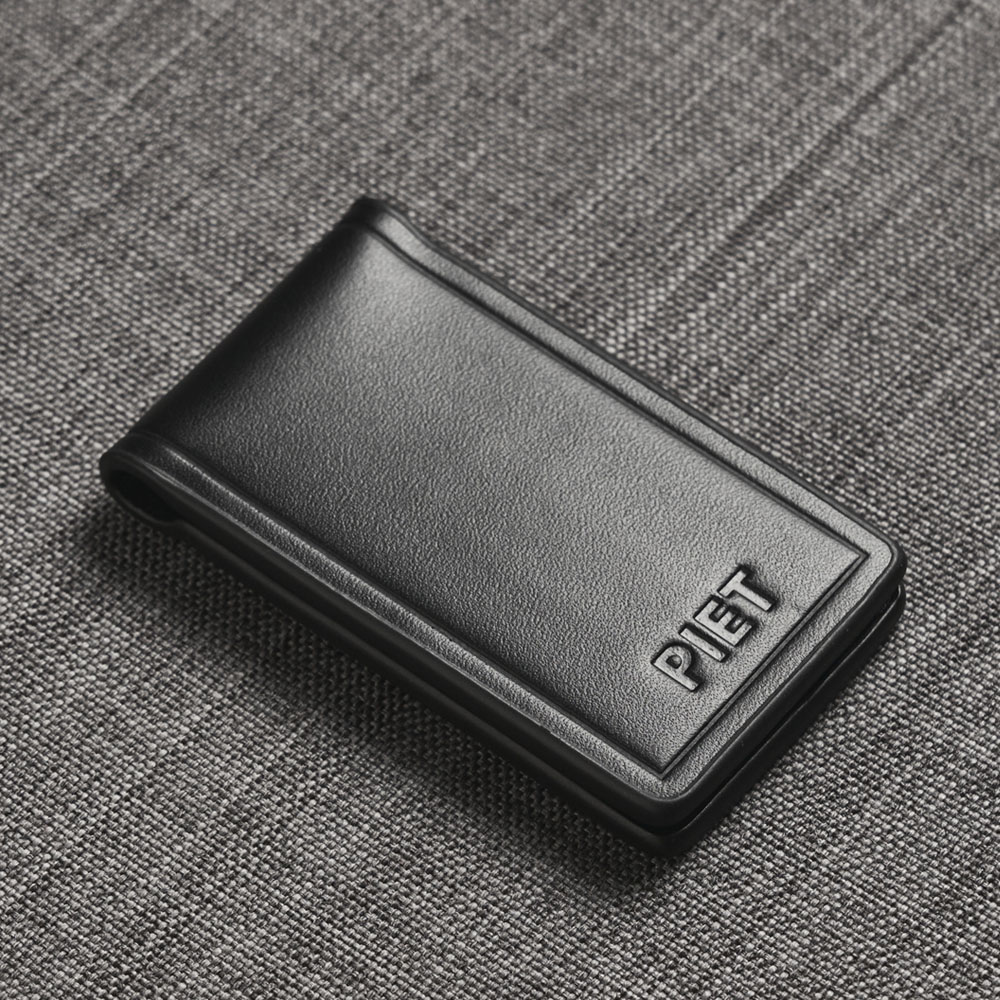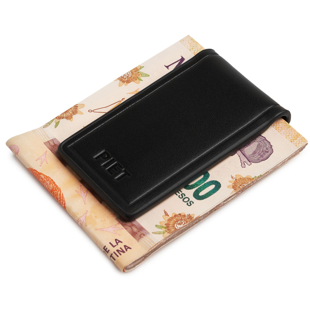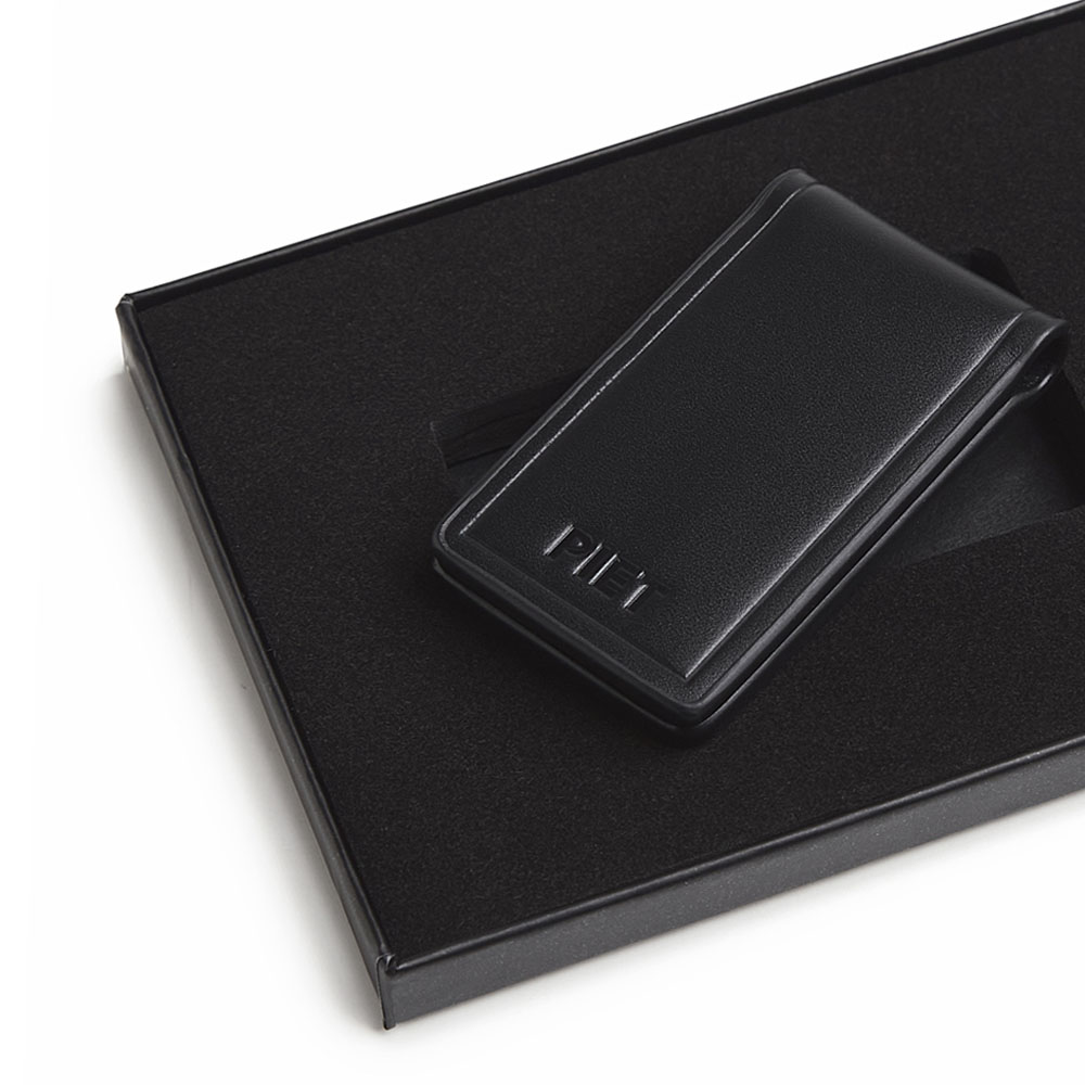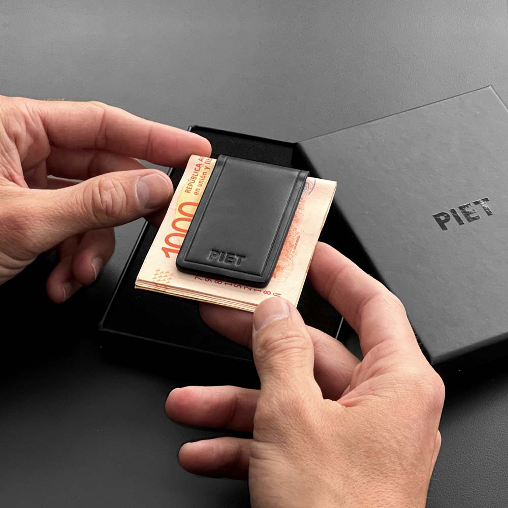 Simple, elegante y funcional, así es el nuevo Clip de Cuero. El clip se pliega al medio y cierra por medio de potentes imanes para sujetar hasta 20 billetes de manera segura*. Logo PIET grabado en bajo relieve, terminación de bordes pintados y fileteado manual. Viene presentado en una caja negra de lujo con cama de goma eva.