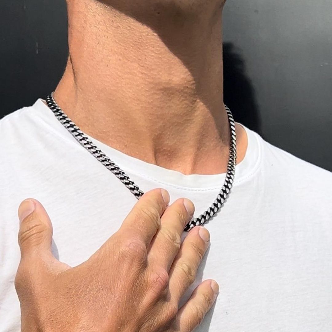 Collar de eslabones de acero inoxidable combinados en acabado negro matte y acero pulido.
