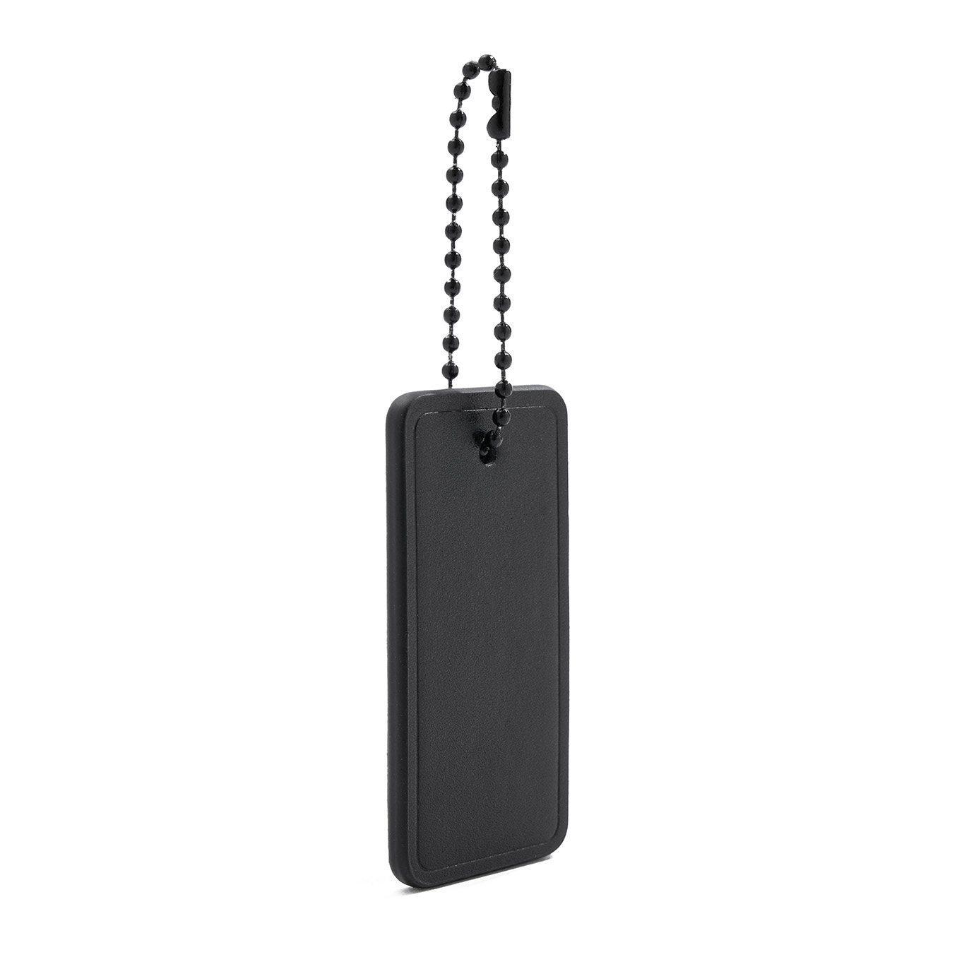 El tag se sujeta al equipaje por medio de una cadena de bolitas negras.