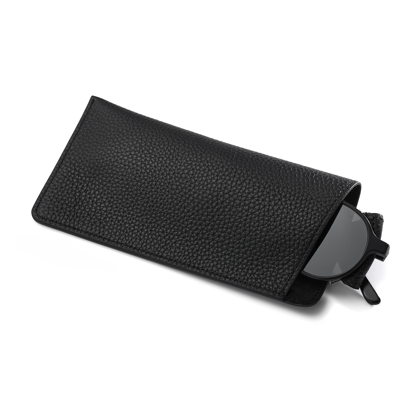 Nuevo porta lentes de formato plano. Realizado en una única pieza de cuero y forrado en una suave microfibra gamuzada. El accesorio perfecto para guardar tus lentes de lectura o de sol en el mínimo espacio.