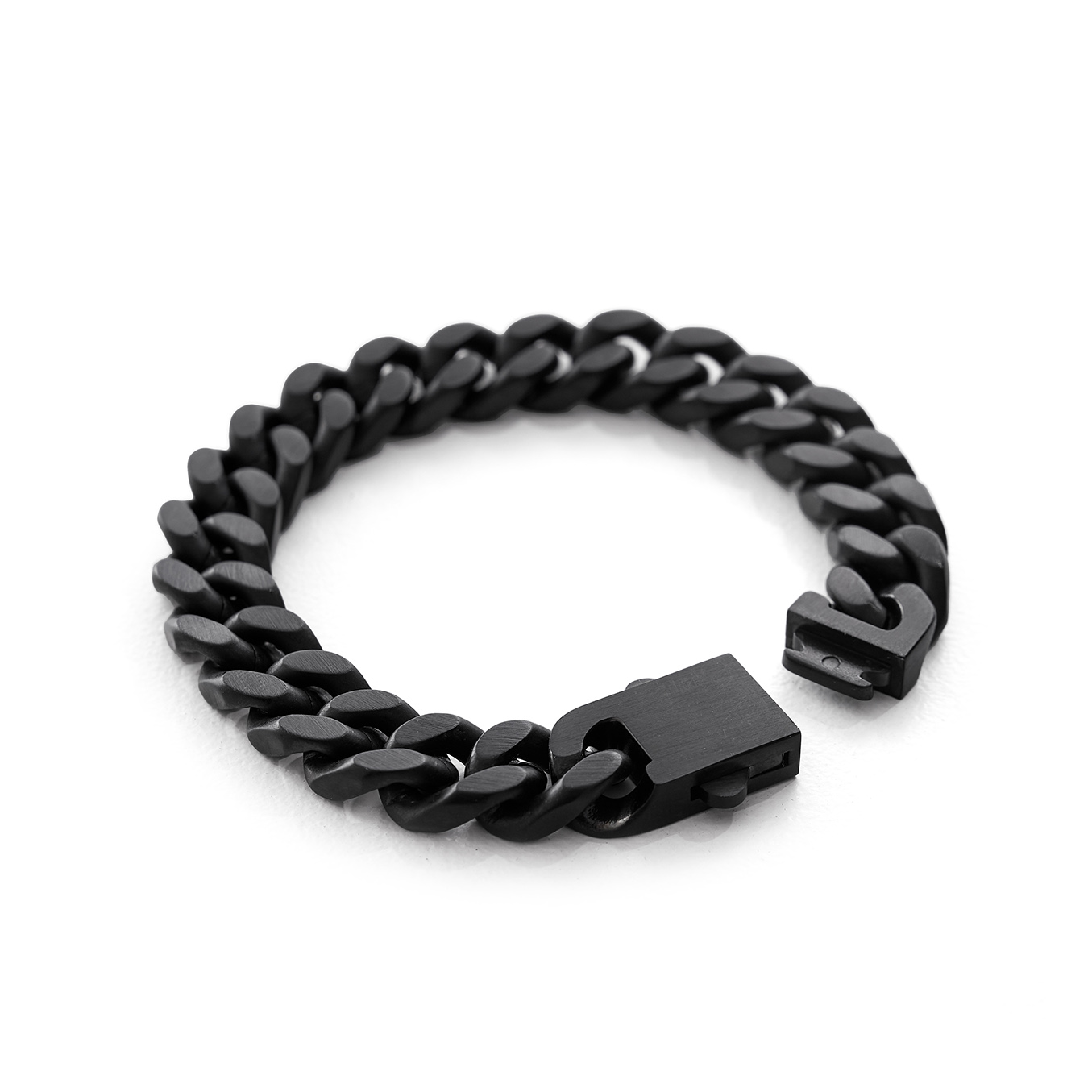 Pulsera de eslabones realizada en acero inoxidable color negro matte.