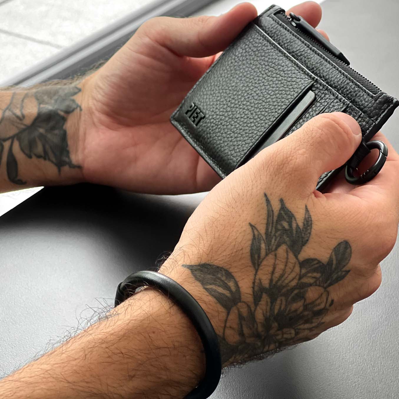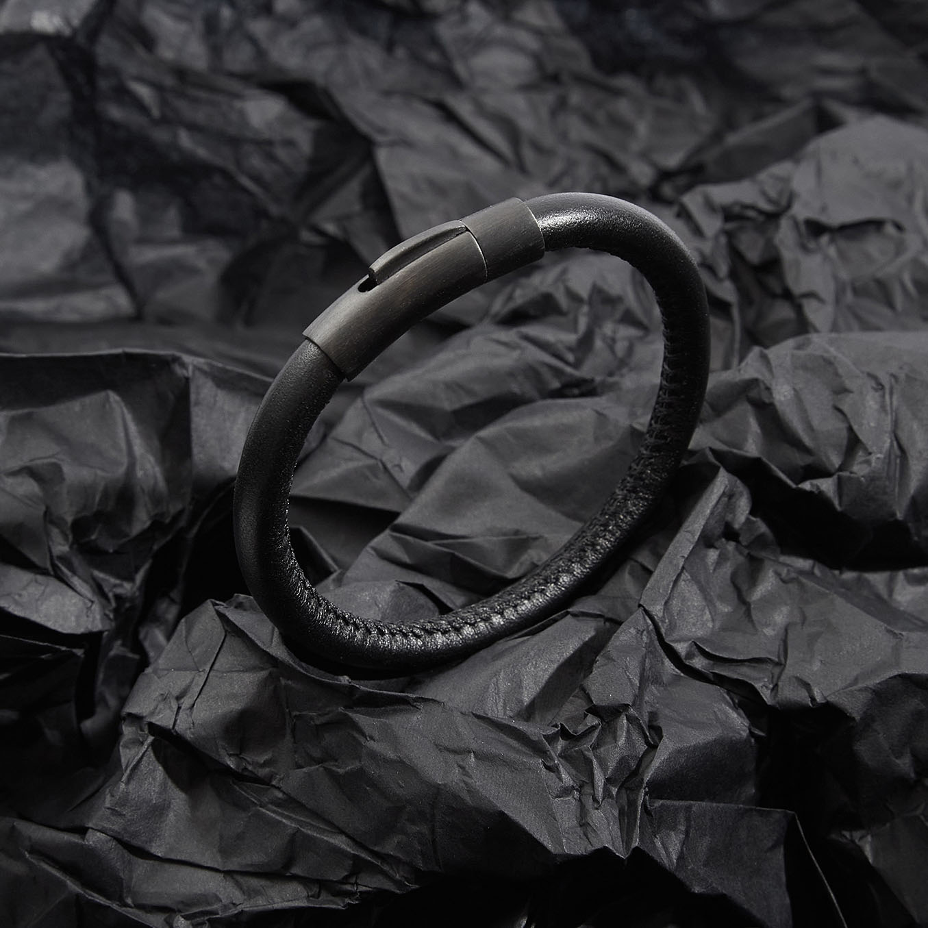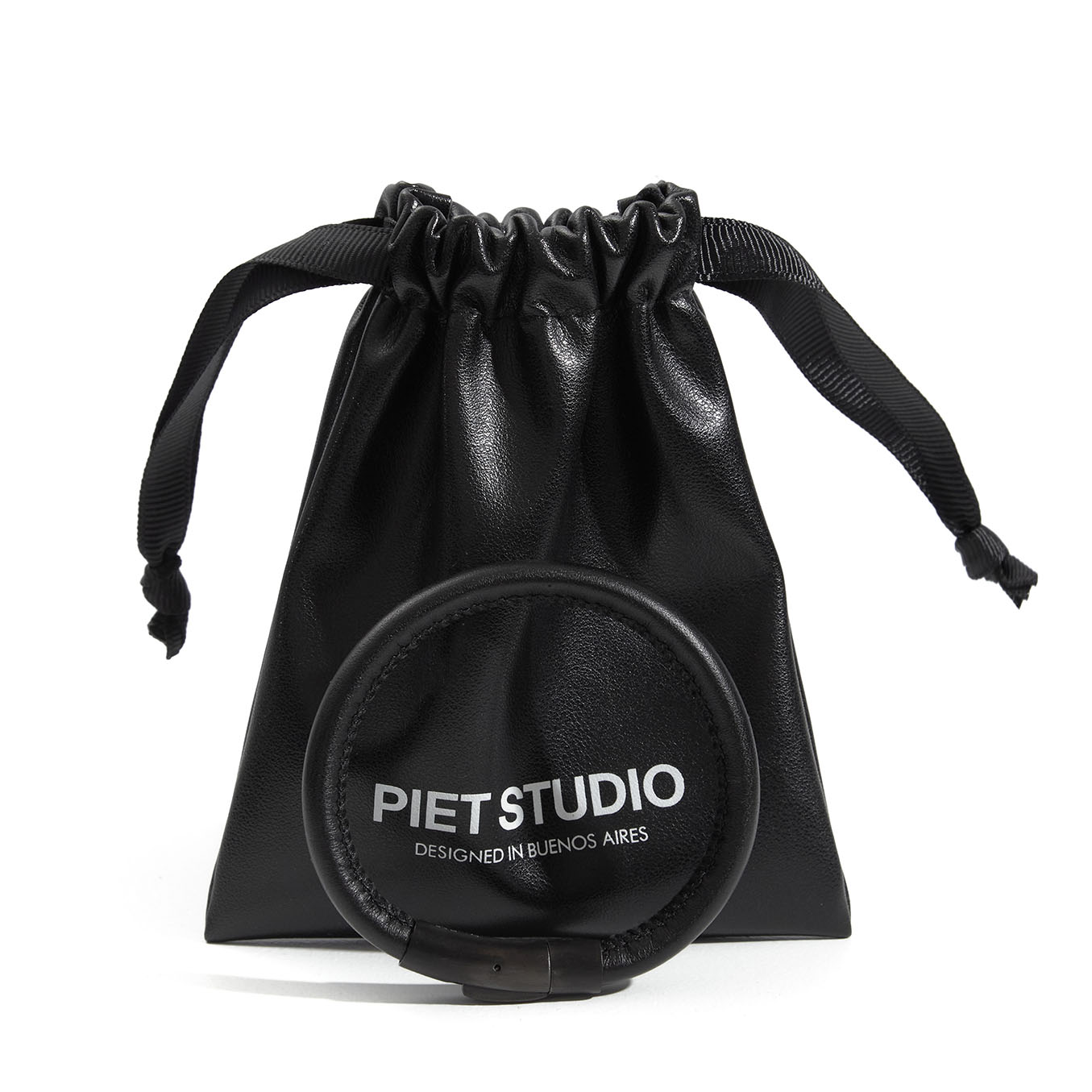Pulsera de cuero vacuno de formato tubular. Inspirada en el diseño minimalista, sobrio y elegante de la gran ciudad nipona. Cuenta con una hebilla metálica en baño negro matte con logo PIET grabado en bajo relieve. Viene presentada en una bolsa negra de PU con estampado de PIET STUDIO en blanco.