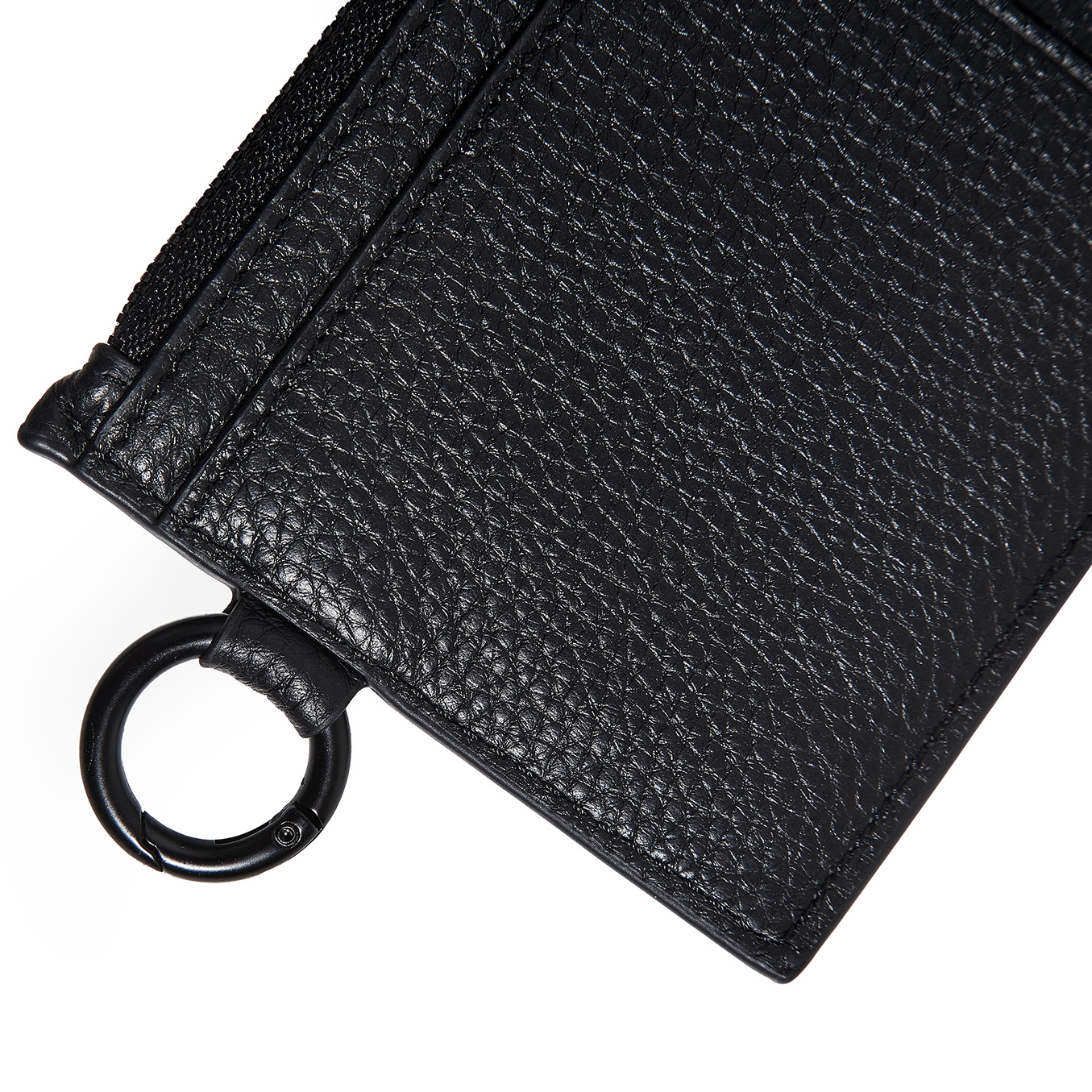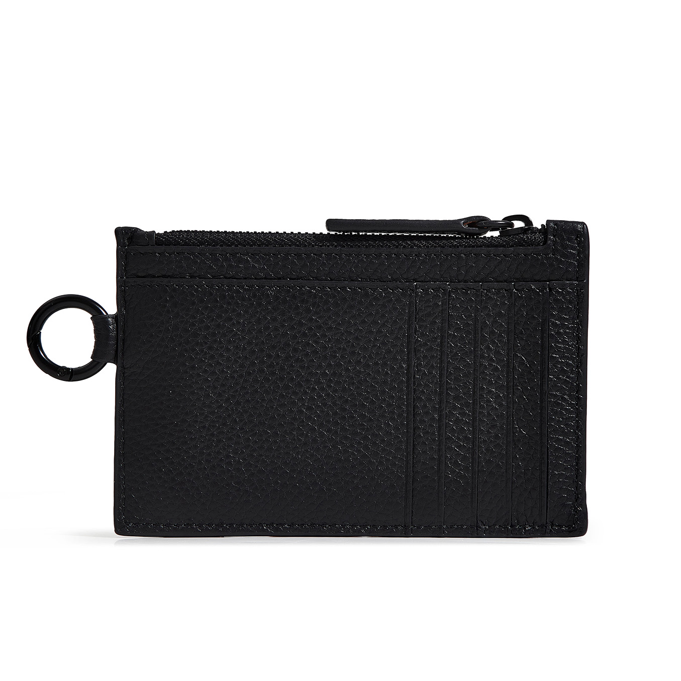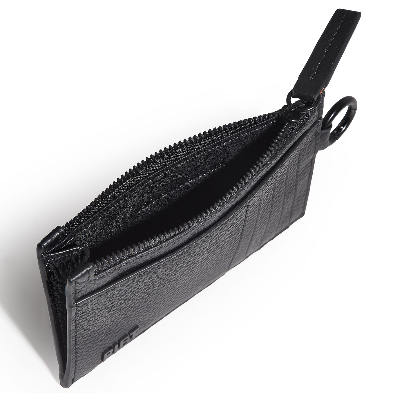 Tarjetero de cuero vacuno graneado. Pertenece a la colección de pequeños Accesorios de Lujo. Cuenta con 5 bolsillos tarjeteros flat a cada lado, para llevar cómodamente hasta 10 tarjetas. Bolsillo principal con fuelle y cierre metálico en baño negro e interior forrado en cuero liso, ideal para llevar billetes, monedas o más tarjetas. Presenta un bolsillo adicional del lado externo. Además este artículo posee un mosquetón circular negro a un lado, con protección de RFID y bordes pintados de manera artesanal con el detalle del logo PIET realizado en piezas metálicas negras.