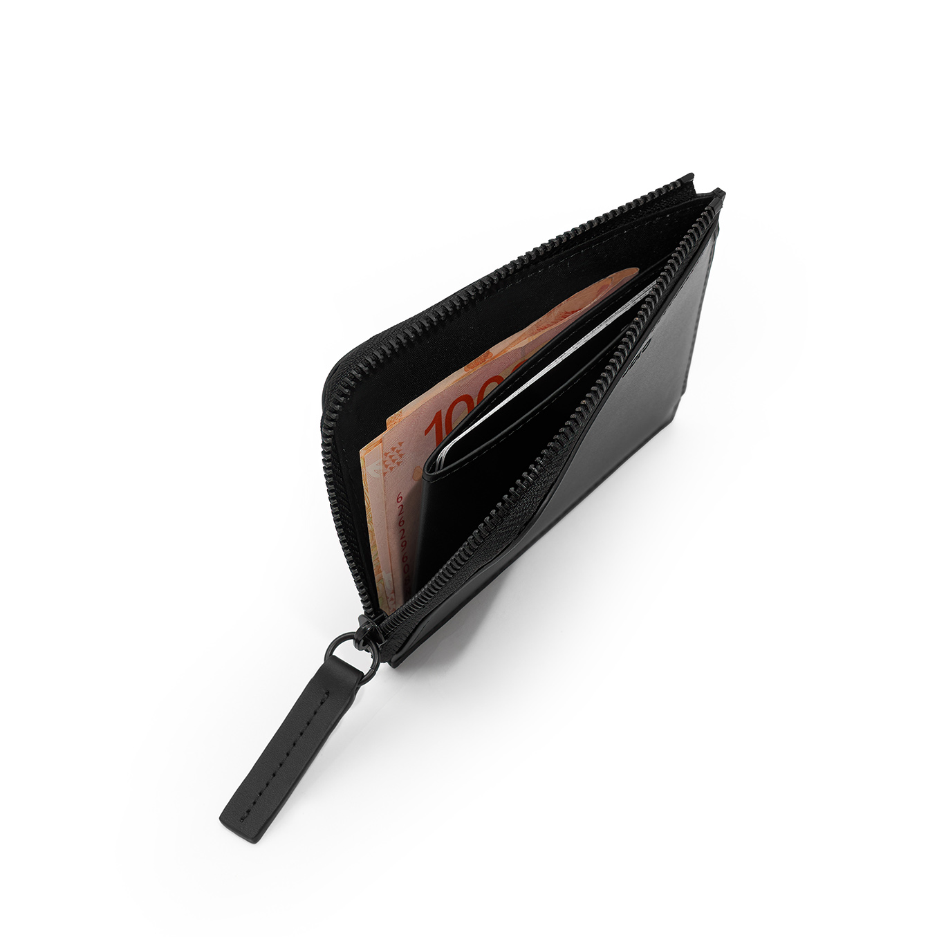 Tarjetero de cuero vacuno liso con cierre metálico negro. Compacto pero con gran capacidad, permite llevar cómodamente hasta 8 tarjetas, varios billetes doblados y monedas. Su interior cuenta con un bolsillo de cuero independiente y está forrado en tela de algodón. Cuenta con tecnología de bloqueo RFID para mantener la seguridad de las tarjetas contactless. Logo PIET STUDIO grabado en bajo relieve sobre el revés.